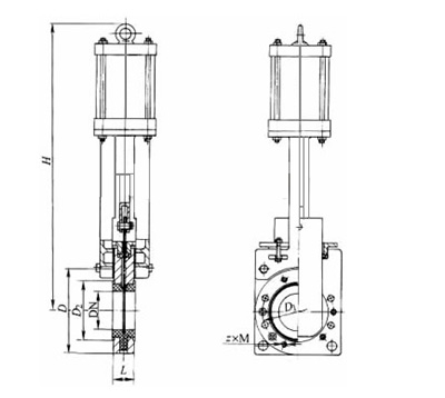 PN1.6MPa下的氣動(dòng)刀閘閥外形尺寸